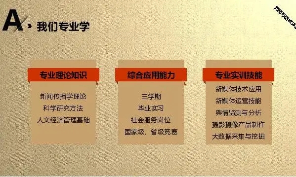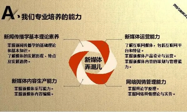 网络与新媒体专业是适应社会的需求而设立的,综合性和交叉性为其特色,是“文”和“理”的结合、艺术与技术的结合、网络技术与数字媒体的结合。这门新兴学科高度融合了新闻传播学和计算机科学,培养网络与新媒体专业理论知识和技能,能够在各种政府和大中型企业的网络信息管理部门、各类网络媒体从事网络舆情信息的搜集、网络舆情的研判、评估、处置等工作;能在各种网络视频网站、网络电视、各种卫视等从事播音、主持、策划工作的各种传播工作。专业社会需求量巨大,课程设计新颖,符合当代社会发展需求。