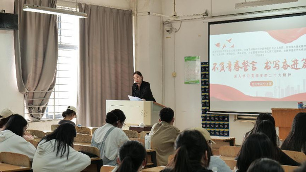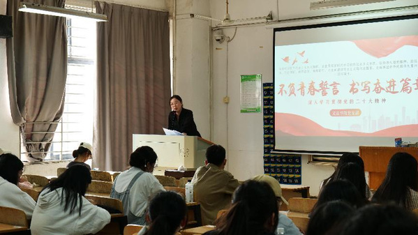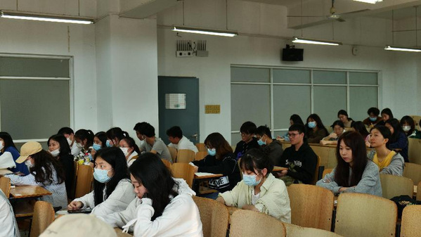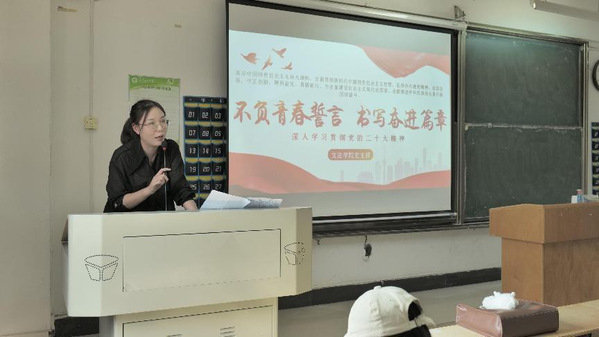 法学学生党支部(记者摄影:黄泽兴)2022年11月9日中午12:10,文法学院法学党支部书记张梦老师在综合楼204为第十期党校的入党积极分子们进行了一节别开生面的党课教育。