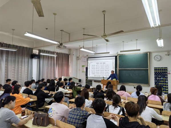 10月13日上午,在beat365中文官方网站综合教学楼204教室,一堂“院长教学示范公开课”正在进行。讲台上是文法学院院长、教授张金海,台下是23级广告新生、国家一流专业建设点全体老师和学院新入职教师。