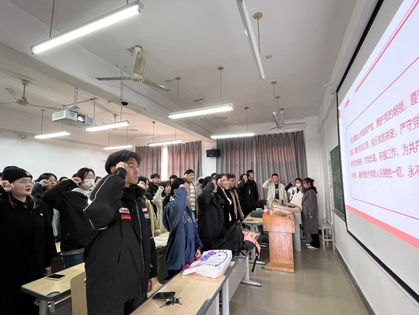 大会第一项,由主持人付雨晨同学带领大家奏唱国歌,重温入党誓词。由新闻学学生党支部宣传委员谭娇为大家诵读党章。会上主持人付雨晨提出,在平时的生活学习中发现诸多入党积极分子、发展对象,甚至许多老党员并不知晓党员不能信仰宗教,因此在大会上提出共产党员不准信仰宗教,这是我们党的政治纪律,是我们党区别于大多数政党的一大特点。但是,现实生活中一些党员隐性信教,背离了党的辩证唯物主义世界观。大会第五项,由主持人付雨晨同学为大家分享了《关于新形势下党内政治生活的若干准则》。党的十八届六中全会通过的《关于新形势下党内政治生活的若干准则》明确规定:“党员不准搞封建迷信,不准信仰宗教,不准参与邪教,不准纵容和支持宗教极端势力、民族分裂势力、暴力恐怖势力及其活动。”在全面从严治党的新形势下,共产党员在不信教问题上绝无折扣可打、绝无变通可言。
