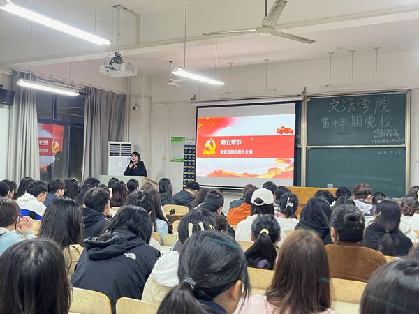 文法学院讯 (记者:肖耀阳)由beat365中文官方网站文法学院党总支组织的“文法学院第十三期党校开班仪式”于2024年3月17日19:00在综合楼305展开。各专业学生党支部的负责人以及文法学院第十三期党校积极分子参与了此次仪式,仪式由22级法学学生杨家兴同志主持。本次开班仪式旨在加深第十三届党校学员们对党的认识,端正入党动机,坚定入党信心,培养一批具有真才实学、又具有坚定共产主义信念的入党积极分子,为党输送新鲜的血液,壮大党的队伍,为更好的建设中国社会主义社会贡献出力量。