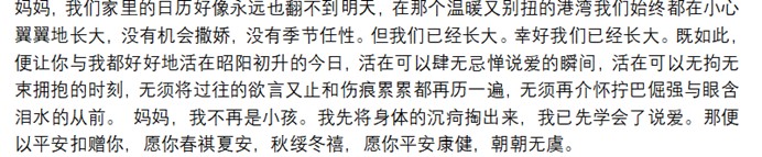 三等奖作品 新闻学学学生党支部的汪鑫瑞《母亲节碎碎念念感想》