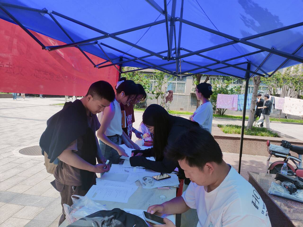 在活动实施过程中,注重细节把握和流程控制。首先,通过多渠道宣传,提高了活动的知名度和参与度。其次,通过法典,图片,示范例句等取材确保了活动的丰富性和多样性。本次活动以摆点的形式开展,活动负责人已提前于学校一食堂旁摆点预热活动。工作人员提前把准备好的拼诗材料备于桌面,包括法律条文、法律术语、法律谚语以及诗文选段等。他们细心地截取、撕成小块,然后同学们根据自己的创意和灵感,将这些碎片重新组合,拼贴成一首首充满春意的诗句。这些诗句将围绕春天的风物景致、所思所感进行创作,用法言法语、用诗文美段,让人感受到春天的温暖与生机。活动通过发布通知,海报宣传,帐篷摆点等形式进行预热,吸引了众多同学的关注,有效的提高了活动的参与度。