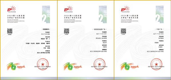 其中,文法学院罗青老师指导的参赛作品《剧说穿“帮”了》(参赛学生:李美静、杜金凤、奚嘉阳、张智威、刘静雯)荣获策划案类全国二等奖;艺术与设计学院刘黎明老师指导的参赛作品《创作真我》(参赛学生:周康康)荣获平面广告类全国二等奖,指导的参赛作品《照见成长绘出梦想》(参赛学生:陈泽华)荣获视频类和微电影广告全国二等奖。