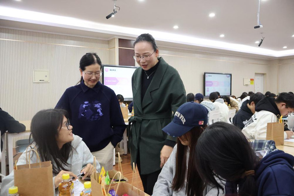 文法学院讯 (记者:潘文坷 梁根实)灯光暖亮书页,创意点亮夜晚。2025 年 11 月 12 日晚 19:00,文法学院和雅楼 224 室内掌声与笑声交织,2025 级新闻学、广告学专业特色晚自习首场活动 ——“书本挖空,脑洞填空” 活动拉开序幕。学院党总支书记陈敏、辅导员冯媛媛、广告学系肖志芬等老师受邀到场,与新生们一同解锁“晚自习新玩法”。