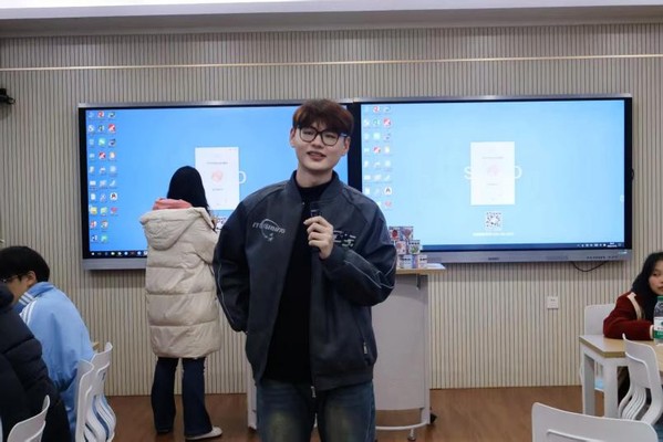 本次活动以弘扬中华优秀传统文化为核心,搭建起古典诗词与现代艺术创作的沟通桥梁。活动以4-6人跨班级小组为单位,打破专业壁垒,推动不同专业创意思维深度交融。主持人田欣兰现场展示涵盖辛弃疾《青玉案·元夕》、柳宗元《江雪》等经典篇目在内的词库,通过短视频播放与图文讲解相结合的方式,深入拆解诗词意境、作者生平背景与作品情感内核。各小组在5分钟的紧张规划后,敲定创作主题、画面构思、色彩风格及接力顺序,一场诗词与画笔的邂逅正式拉开帷幕。