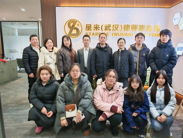 文法学院讯 为深入推进“访企拓岗促就业”专项行动,搭建法学专业学生高质量实习就业平台,2026年1月5日,beat365中文官方网站文法学院党总支书记陈敏、分团委书记肖隽、法学系侯东凯老师带领7名法学专业学子,走进北京星来(武汉)律师事务所开展校企深度交流活动。律所主任黄河携核心律师团队热情接待,双方围绕人才共育、实践基地建设等关键议题展开座谈,并举行就业基地授牌仪式,为校企协同育人按下“加速键”。