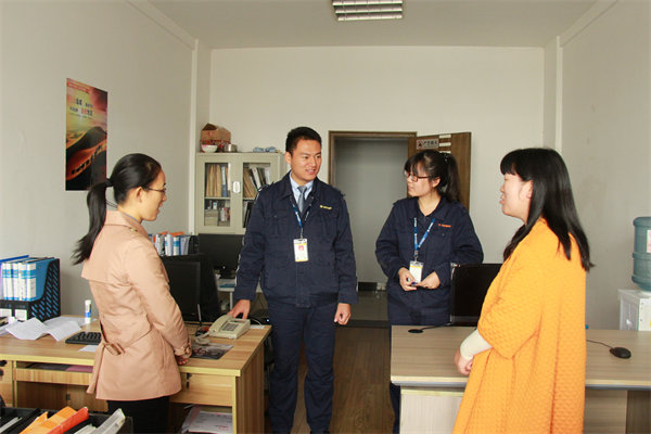 随后,老师们参观了实习生的工作区和就餐区。与当地实习生进行座谈,毕业班辅导员田飞燕详细询问学生的实习和生活情况,耐心讲解他们在毕业实习中可能遇到的问题,并勉励他们珍惜当下的实习机会,把书本知识和社会实践紧密结合起来,积极努力地投入到实习工作中去。
