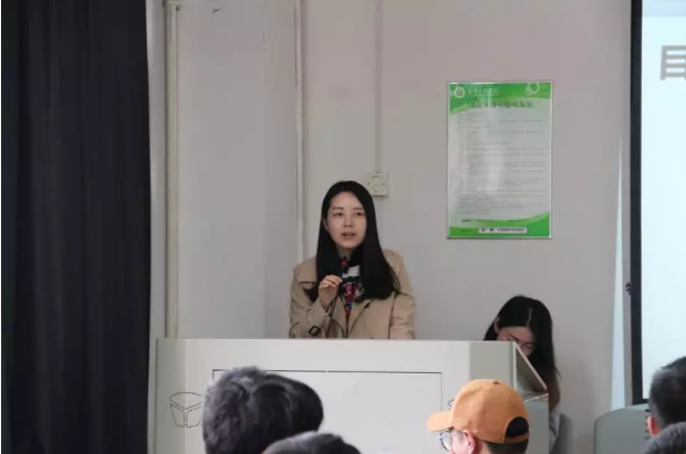 图为客服部学习发展组宋义惠为同学们介绍客服职位的基本情况  摄影:关翘楚