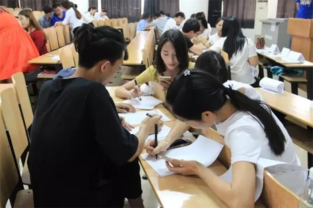 图为14级学生参加大道物流专场校园招聘面试——无领导小组讨论环节