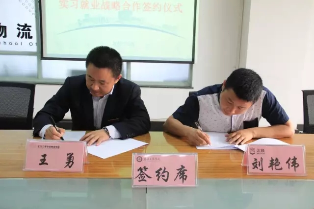 图为我院王勇副院长与北领科技物流刘艳伟经理签订实习就业合作协议
