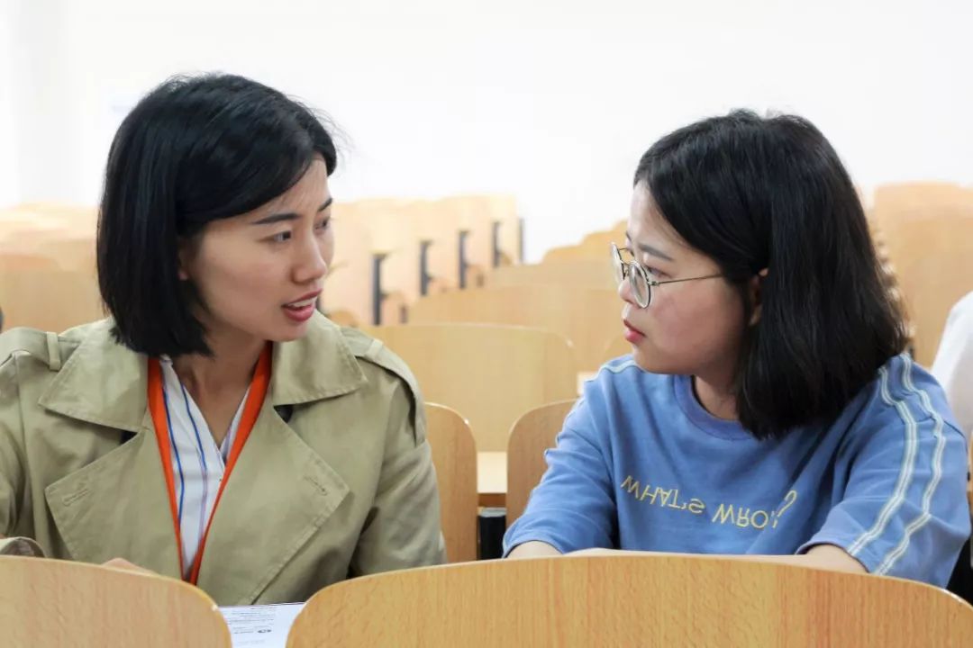 图为心怡科技股份有限公司人事专员闫娜娜为同学们面试 摄影:叶炫志