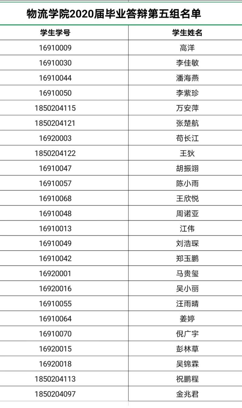 物流学院2020届毕业生共116人,经论文查重、指导老师和审阅教师审核,以下105名学生符合答辩要求,允许参加5月23日论文答辩。对此审核结果有异议的同学,请于5月18日12点前与学院联系。