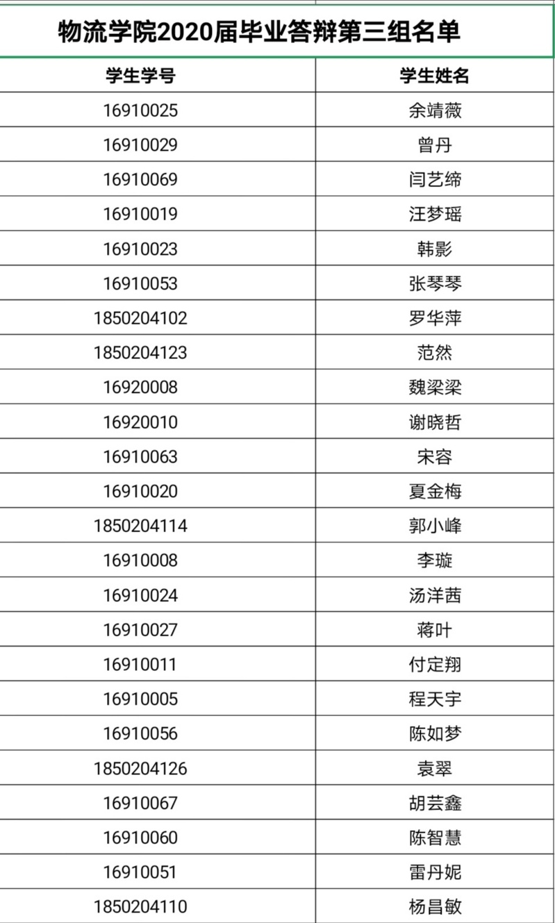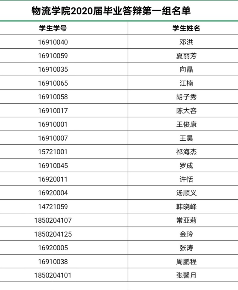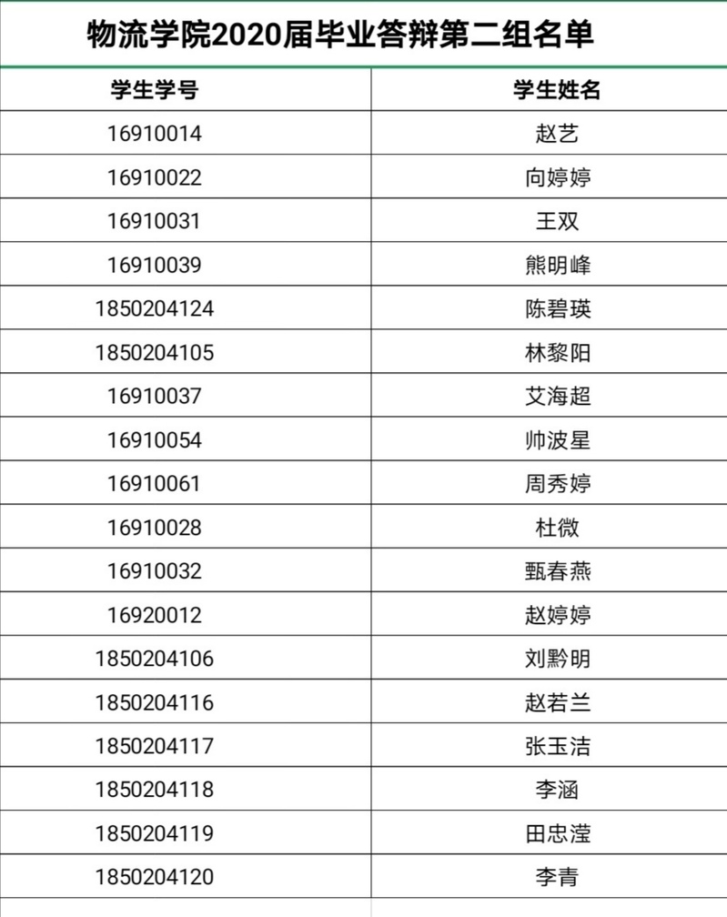 2016级学生: 物流学院2020届毕业论文答辩资格审核工作已结束,现将初审情况通知如下: