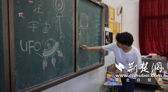 为多方面培养孩子们的兴趣爱好,丰富孩子们的生活,7月12日,武汉纺织大学外经贸学院星与心愿志愿服务队在襄阳市襄州区黄龙镇中心小学开展了“宇宙之旅”主题美术活动。志愿者向孩子们介绍了我国的航天事业,并引导孩子们锻炼动手能力。
