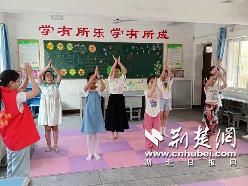 7月10日,来自汉江师范学院的“向阳花”志愿服务队,来到十堰市郧阳区鲍峡镇中心小学,开展“舞出青春底色,微笑点燃夏天”支教活动。