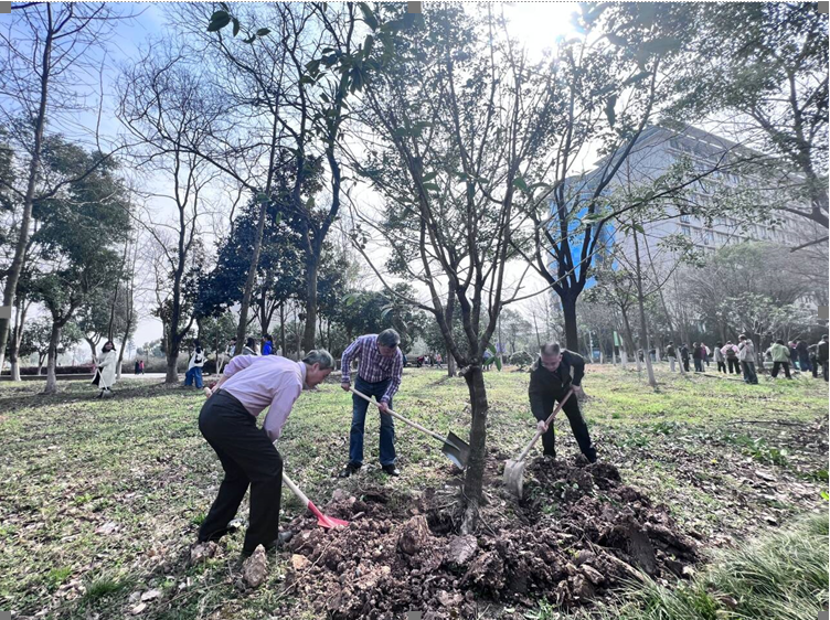 3月12日下午,物流学院多位教师与学生积极参加学校工会组织的“绿意葱茏,植树成林,春色满院”植树节主题活动。教师们拿着铁锹,拎着水桶来到静思湖畔的“春华秋实林”栽植桂树。