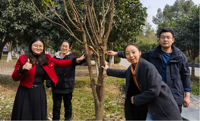 图为物流学院师生在共植的桂花树前合影