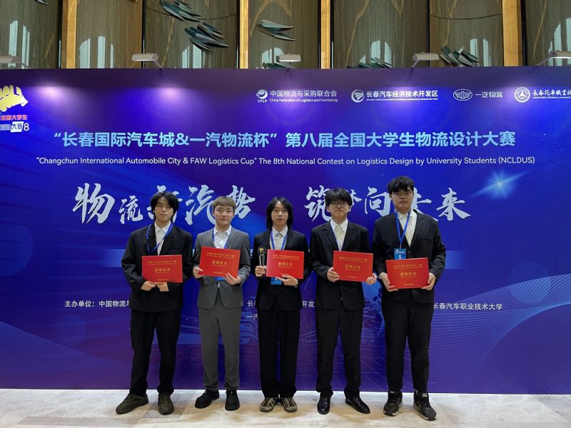 △获全国大学生物流设计大赛三等奖的师生合影