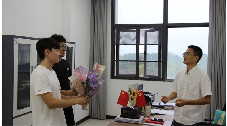 当“送花使者”轻轻推开一扇扇虚掩的门,有的老师正在专心备课,有的在和同学讨论问题。看到同学们送上的花束,听到“老师,节日快乐!”的祝福,老师们又惊又喜,脸上露出欣慰的笑容。