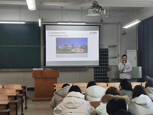 “汽车物流不是简单运货,而是覆盖汽车从零件到整车的全生命周期服务。”人事经理王正波以行业认知误区破题,结合东风物流武汉公司的发展实践,聚焦企业特色、实习岗位、职业素养三大核心,为学生带来干货满满的分享。