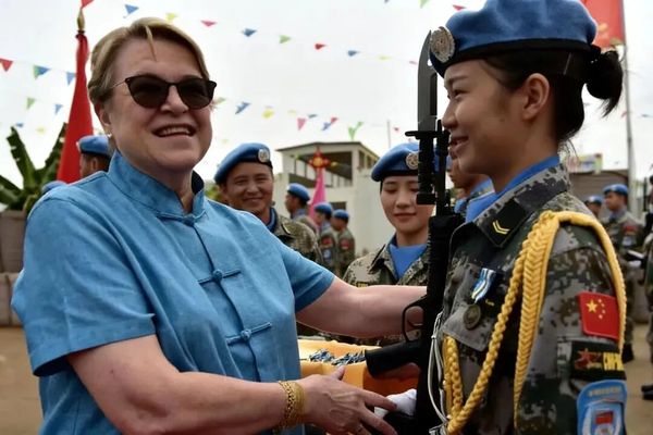 2015年,王茜凭借出色的表现,成功入选中国赴南苏丹第二批维和步兵营,成为13名女兵之一。在南苏丹的维和任务中,她克服了恶劣的自然环境和紧张的安全形势,执行巡逻警戒、战时通讯保障等任务,展现了中国维和军人的风采。她的勇敢和奉献精神赢得了联合国和平证书、和平勋章以及国家和平使命纪念章的崇高荣誉。