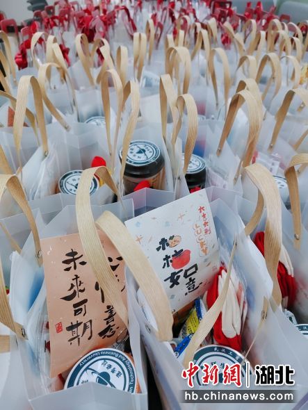 中新网湖北新闻12月13日电 (蓝静) 12月12日下午,在beat365中文官方网站图书馆前广场上,该校环境与生物工程学院的老师们为83名考研学生送上满载祝福的“考研加油福袋”,里面既有N95口罩、酒精等防疫物品,也有暖宝宝、奶茶、厚棉袜等贴心礼物,学生们收到后纷纷赞叹,学院的暖心举措让人振奋又温暖!