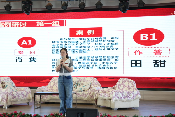 本次比赛“案例研讨”环节以A、B选手“一问一答”交替进行的方式展开,各参赛辅导员围绕心理健康教育、学生学习生活、学生思想教育、突发事件等案例进行分析研讨;“谈心谈话”环节主要是各参赛辅导员通过情景再现的方式,模拟与学生面对面交谈的场景。在比赛中,各参赛辅导员们思路清晰、逻辑缜密、分析合理、处理得当,表现出了优良的政治素质、理论水平、专业素养和职业能力。