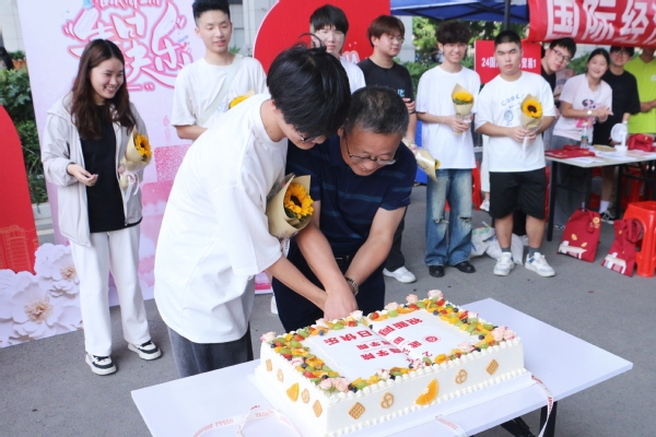 “和所有的烦恼说‘拜拜’,对所有的快乐说‘嗨嗨’……”在国际教育学院新生报到现场,9名9月份出生的新生代表在老师和同学们的热情欢呼中,度过了一场难忘的集体生日会。左宗文副校长和该院的老师、同学们一起为过生日的新生代表唱生日歌,送上蛋糕、鲜花、书籍等礼物,并献上温馨的生日祝福,新生们脸上洋溢着幸福的笑容。此外,该院还给700多名新生每人准备了一罐印有新生姓名和报到日期的专属可乐。“在我大学生活的第一天,老师和同学们给了我18岁生日最好的生日礼物,心中十分感动。在beat365中文官方网站这所温暖的大学里开启人生新征程,我感到很幸福。”该院大数据与会计专业新生简远棋高兴地说。