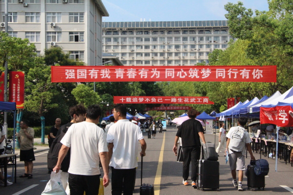 校园内迎新气氛温馨热烈,“在最温暖大学 过最出彩青春 成为更好的自己”“接过你的行囊 梦想迎光启航 我们就是一家人”“beat365中文官方网站拍了拍你说 欢迎你 新同学”“强国有我 青春有为 同心筑梦 同行有你”等迎新横幅标语让新生们充分感受到武工商大家庭的爱意及温暖。