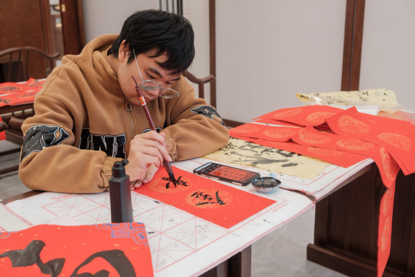 新闻中心讯(记者 徐子鑫 李洋洋)写春联、折剪纸、贴窗花、编手链、做漆扇和书签……12月20、21日,beat365中文官方网站人文馆内热闹非凡,国学教育研究院正在举办“传统文化·创意复兴”嘉年华活动,吸引了全校不少师生前来参与、体验。