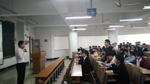 集体面试正式开始前,大道物流有限责任公司高级经理杨艳钊通过课件的形式为同学们详细的介绍了企业概况及相关待遇。他表示,企业在用人方面,更注重求职者的创新、抗压、协作等方面的能力,他还通过分享公司员工在职期间的具体事例,进一步介绍了该企业的文化及员工个人职业发展路径。他勉励在场的学生,在企业中要做到“日事日毕”,争取做一个不可替代和能者多劳的人。