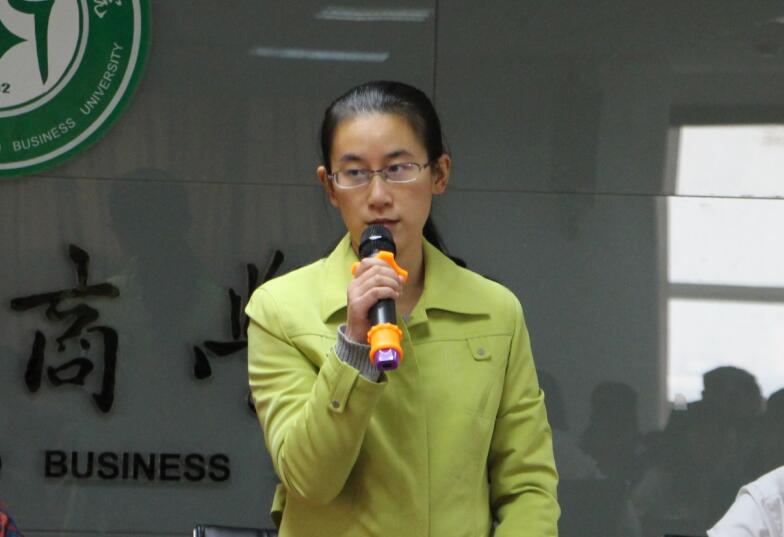 图为物流学院总支书记蔡菁在会上讲话