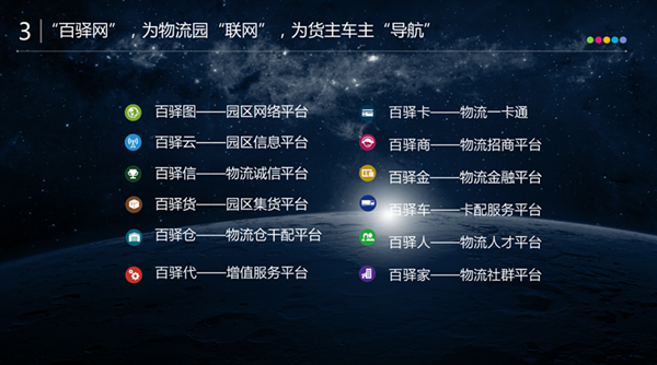 3.“百驿网”,为物流园“联网”,为货主车主“导航”