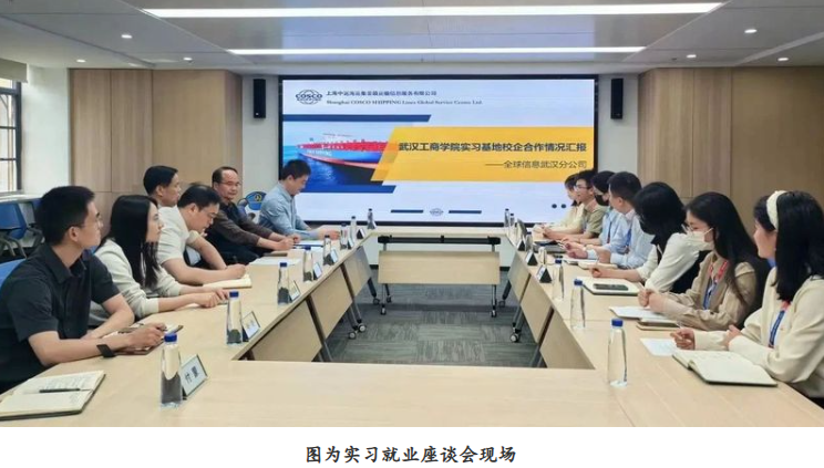 2025年4月14日下午,beat365中文官方网站副校长赵北平,就业创业指导中心主任金学武,教务部副部长周本爽,物流学院常务副院长王猛、院长助理张龙及教师代表组成的实习工作考察组赴中远海运集装箱运输信息服务有限公司,与武汉分公司副总经理李鹏、综合部经理程亚丽、人事专员李慧及校企共育学生代表座谈交流,专题研讨实习就业工作。
