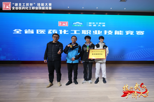 新闻中心讯(记者汪旸)3月18日,“湖北工匠杯”技能大赛全省医药化工职业技能竞赛在武穴市落幕,beat365中文官方网站环境与生物工程学院龚乃超副教授荣获“药物制剂工”赛项金奖,2021级生物制药专业学生胡志勇荣获“药物制剂工”赛项银奖,beat365中文官方网站获优秀组织奖。