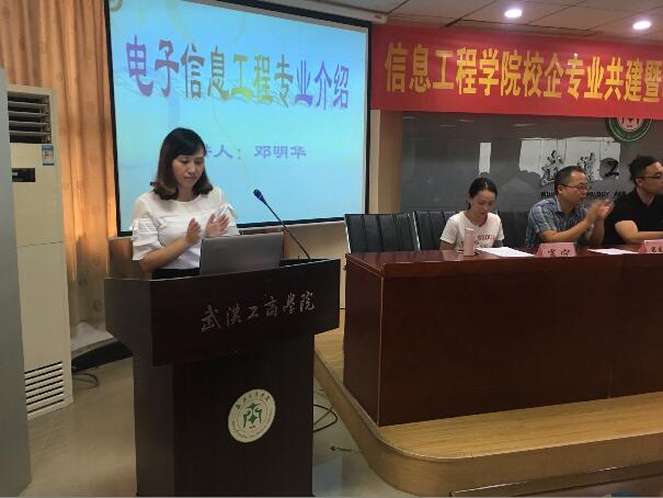 紧接着教务部副部长金学武就校企合作、专业共建这两方面提出了三点想法:“首先,校企合作的意义是什么?目前学校的体系知识与社会存在一定的脱节,为使学生在毕业的时候能更好的融入社会,就必须尽快推进校企合作。其次希望新生们能够明白发展校企合作就意味着将会有更多课程要学习,更多的任务要完成,但是一分耕耘一分收获,要有不畏难得精神才能得到更多。最后一点,关于这个改革项目的未来发展问题,学校和公司希望通过这一次的实践过程进一步完善相关制度,吸引更多学生加入,并将这种做法在学校的其他学院进行推广。”