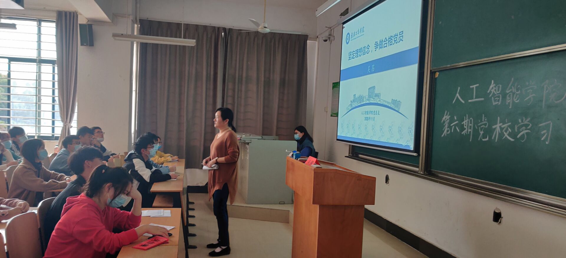 人工智能学院第六期党校学习于2020年11月20号顺利结束。本次党校共分为四次面授课,分别由李纪明教授、吴茜书记、吴雅雅老师、吴佳曦老师分别讲授了四次面授课程。