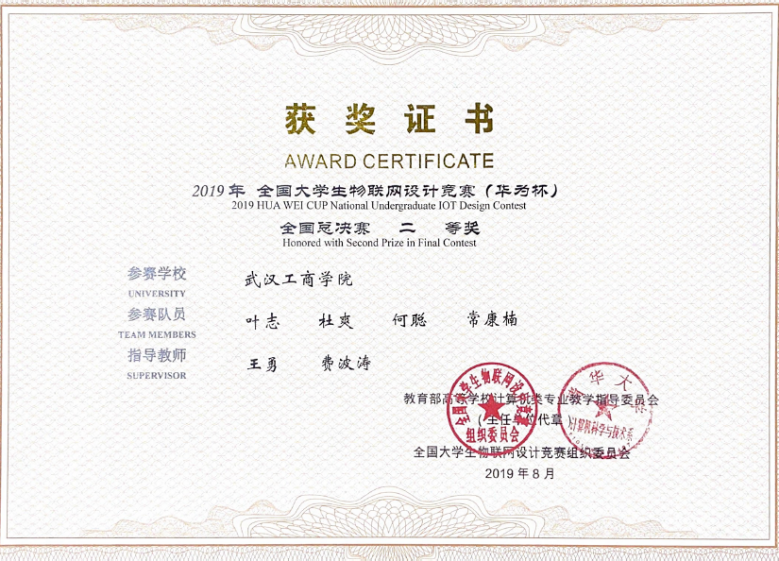 获奖学生:叶志、杜爽、何聪、常康楠