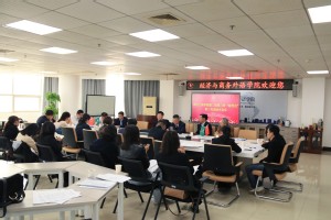 图为孔建益校长与经外学院、管理学院、电子商务学院院长签订目标任务书 摄影:郝芮