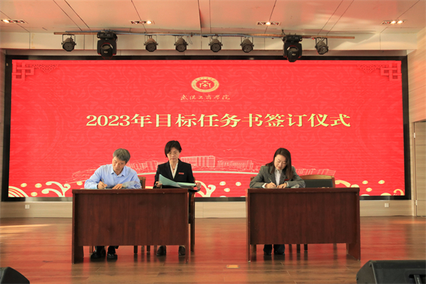 各代表团发言结束后,孔建益校长与各个学院以及职能部门代表签订了2023年度目标责任书。