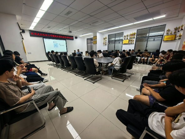 (通讯员:王文静)10月9日下午3:00,武汉纺织大学计算机与人工智能学院,研究生硕士导师,副院长魏雄应邀来到人工智能学院,在15栋315学院报告厅,为2026届有考研意向的学生们带来 “武汉纺织大学计算机科学与技术、电子信息专硕” 专题宣讲会。人工智能学院书记吴艳、副院长张婷、2026 届考研指导小组成员宫健丽、尹静、刘宇参与了此次宣讲。