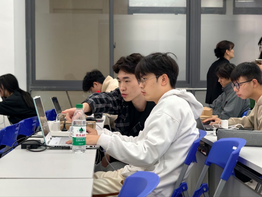 老师们手持整理好的技术资料,耐心驻足在学生身旁,面对复杂的代码报错、硬件调试难题,先以清晰的逻辑拆解问题本质,再将晦涩的专业原理转化为“可落地、可复现”的实操方法。从“代码模块的功能衔接”到“硬件电路的参数匹配”,他们逐一击破技术瓶颈,不仅帮助学生解决当下的实操障碍,更引导其建立系统化的问题分析思维,助力夯实专业基础、提升竞赛实战能力。