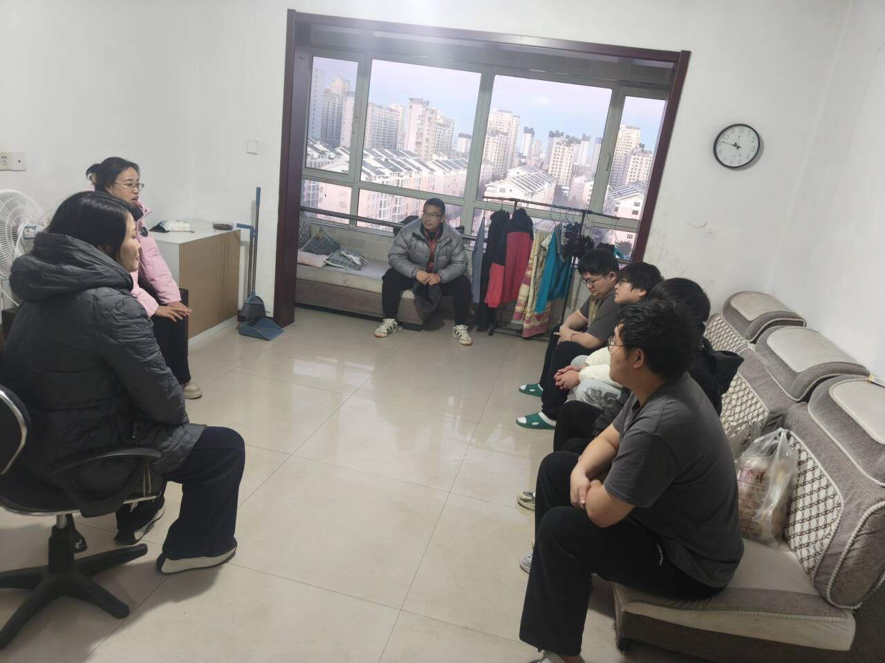 图为学院一行深入宿舍慰问实习生