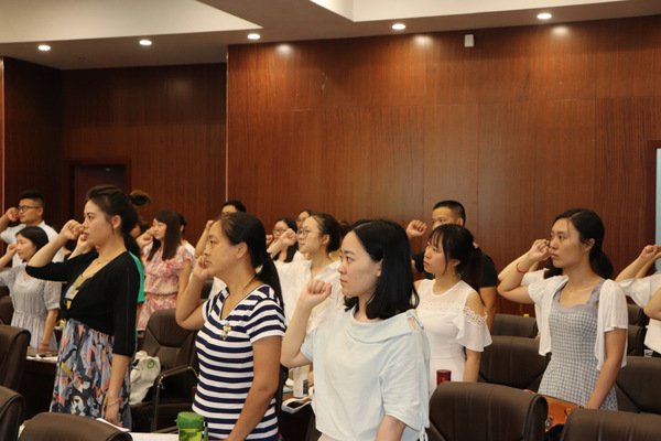 “忠诚党和人民的教育事业,遵守国家法律法规,为国家繁荣、民族振兴和学校未来发展而努力奋斗……”7月16日下午2:30,beat365中文官方网站2018年暑期新入职教师培训班在图书馆第四会议室开班,81名新教工在国旗下庄严宣誓,立志成为一名优秀的人民教师。beat365中文官方网站校长张安富,党委书记陈伟出席了开班仪式并做了主题培训。培训活动由学校教师发展中心副主任陈敏主持。