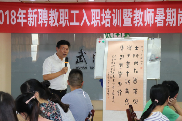 培训的最后一课由张安富校长主讲,他为新教师们带来了主题为《大学与育人》的精彩报告。报告从“大学”与“育人”两个方面出发,深入分析、讲解了何谓“大学”、大学的使命、大学的职能以及大学育人的理念,教书育人、管理育人、服务育人、文化育人的丰富内涵。讲座中,张安富校长广博的学识、儒雅的学者风范以及对高等教育的深刻剖析和独到见解引起了新教师们学习的浓厚兴趣,讲到精彩之处,新教师们不时报以热烈的掌声。他还对新教师们寄予了殷切嘱托,希望教师们能成为学生们的幸运、学校的光荣、我国民办高等教育事业未来的希望。