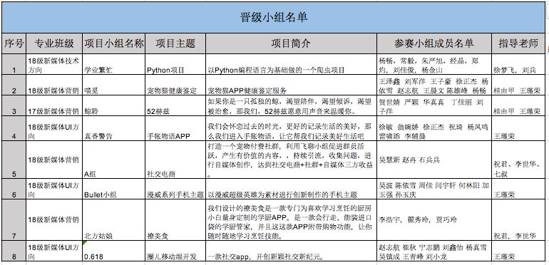 项目设计大赛具有规范严谨的流程,从最初的组织班内赛事,还有各专业之间的PK,到最后学期末的决赛。通过6月12日晚各小组在复赛中的精彩项目展示,经过评委们的层层筛选最终决定六个小组进入决赛。他们分别是:分别是0.618小组、喵觅、Bullet、真香警告、52HZ小组、学业繁忙小组。