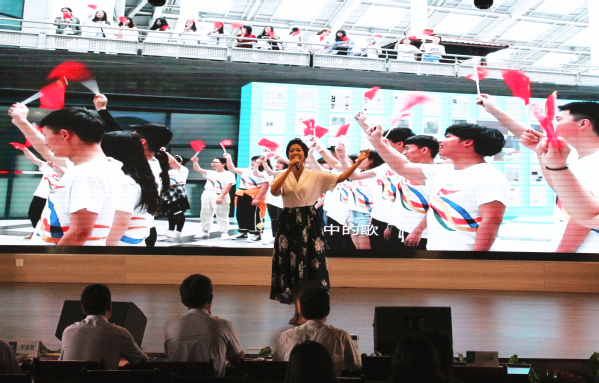大会现场,学校老师邹青还演唱了热血澎湃的歌曲《我和我的祖国》,宣传策划部学生带来了深情的诗歌朗诵《我的国我的家》,引得全场掌声雷动。