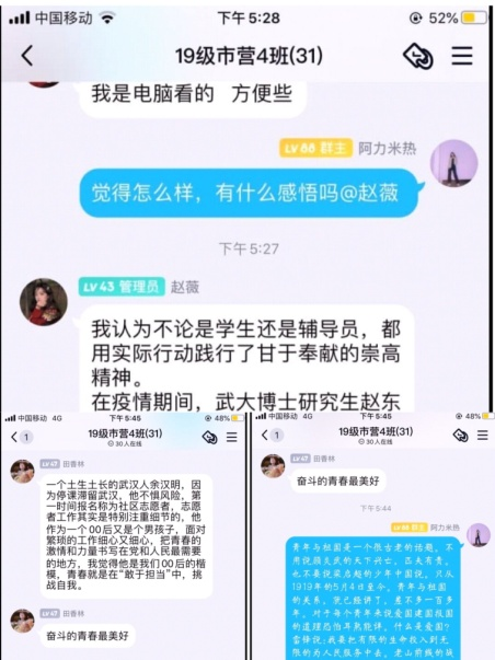 在观看结束后,同学们积极参与讨论交流。他们表示出此次观看《2020年度最美大学生》让他们认识到矢志奋斗的必要性,也坚定了奋力拼搏的重要信念,实现振兴民族和国家富强,历史的崇高使命需要青年学生一代代薪火相传,从而不断提高学生爱国的凝聚力和民族自豪的感召力。