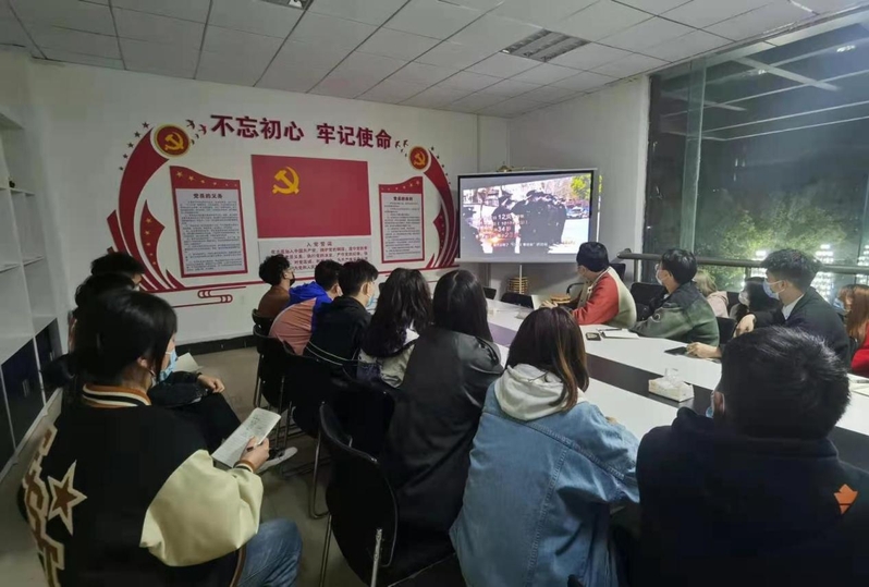 2021年3月23日晚,应用技术学院师生党员代表在综合楼304会议室集中观看专题片《榜样5》,其他百余名入党积极分子在寝室进行专题学习。